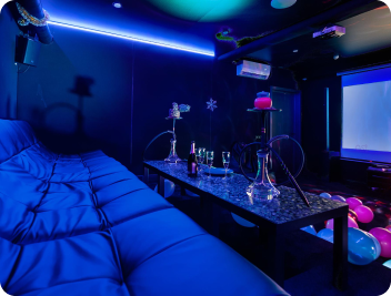 Еду и напитки можно приносить с собой или заказать из любых ресторанов/кафе. Непосредственно у нас мы предлагаем фондю, закуски, напитки, попкорн.